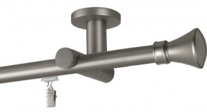 Wspornik Pojedynczy krótki (2 szt.) w kolorze co pozostałe elementy karnisza. Wsporniki posiadają wyjątkowo stabilny system montażu: na 3 kołki rozporowe (dołączone w zestawie wraz z wkrętami). Masywna, metalowa podstawa wspornika zapewnia trwałe i stabilne zamocowanie do ściany. Po zamontowaniu wspornika odległość rur od ściany wynosi 8.2 cm