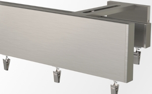 Przy długościach przekraczających 240 cm – 2 profile do połączenia metalowym łącznikiem skręcanym za pomocą wkrętów dociskowych (połączone profile do czoła umożliwiają przesuw tkaniny) łącznik nie jest widoczny