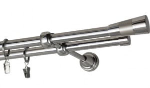 - Końcówki karnisza Zaślepka (2 szt.) wykonana z metalu pokrytego powłoką ochronną oraz warstwą lakieru, dzięki której jest ona bardziej wytrzymała na ścieranie i uszkodzenia. Końcówka Zaślepka przedłuża karnisz o 0,35 cm (wartość wliczona w podaną wyżej długość całkowitą).